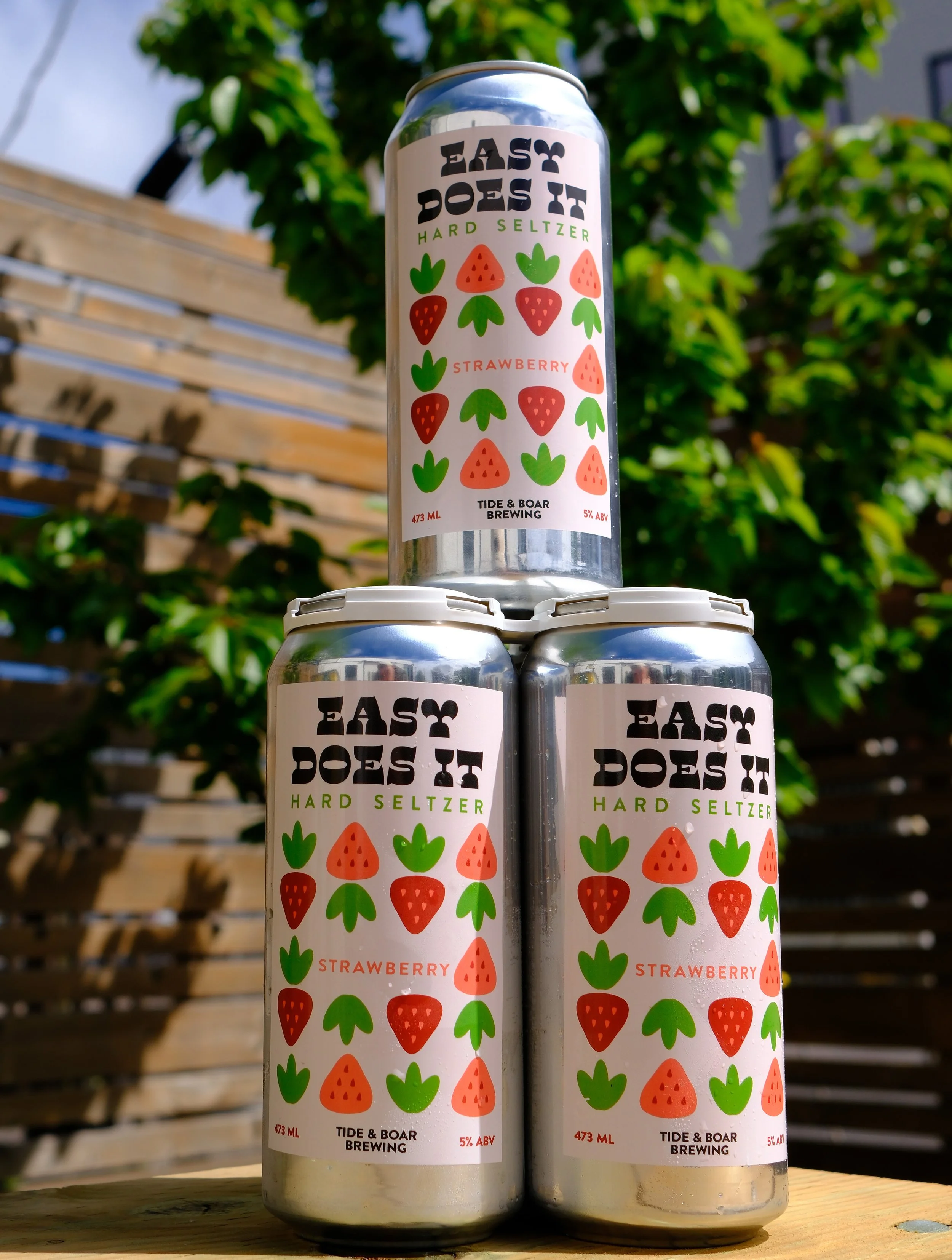 Easy Does It Hard Seltzer—brewed in-house and made to be crisp, clean, and easy-drinking. Naturally flavoured with strawberry for a refreshing finish that feels right at home in the maritimes